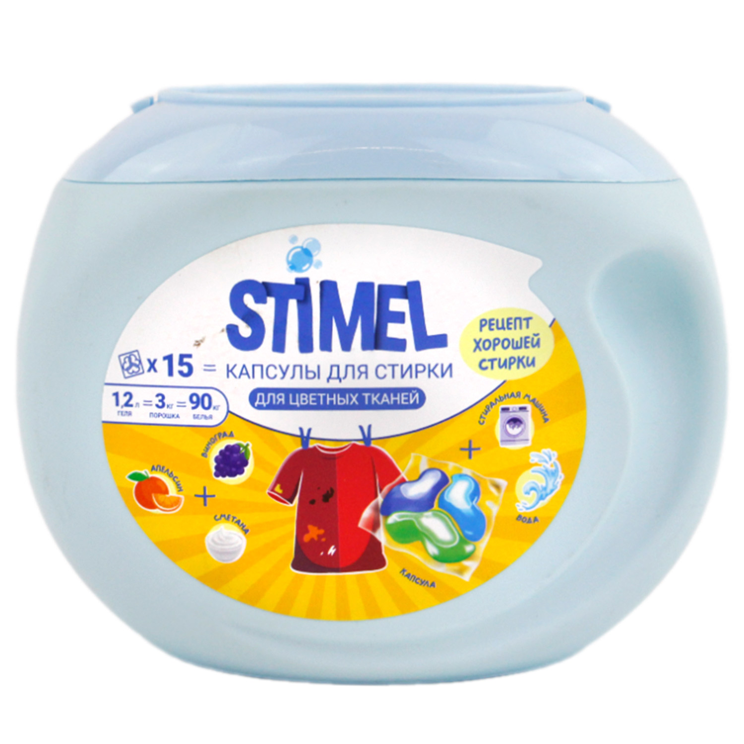 -Капсулы для стирки Stimel Color 15шт/мал.банка (3 бунк., 180гр) 20019382