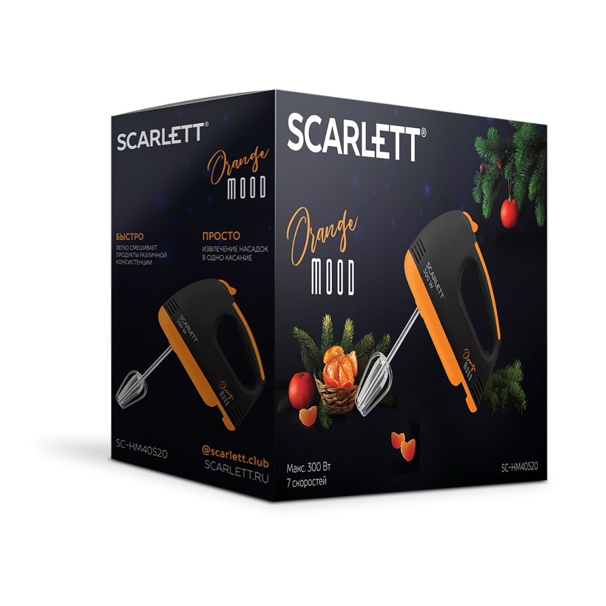 Миксер эл. Scarlett "Orange Mood" SC-HM40S20, мощность 300Вт, 7 скоростных режимов, шнур 0,9м, черный с оранжевым
