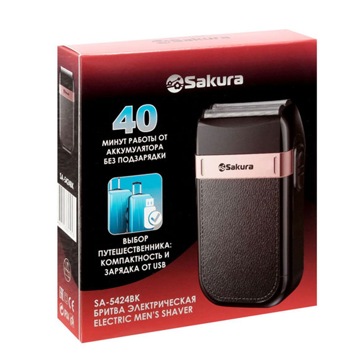 Бритва эл. SAKURA SA-5424ВК, 2 гол.,сух.бритье,USB зарядка,аккум