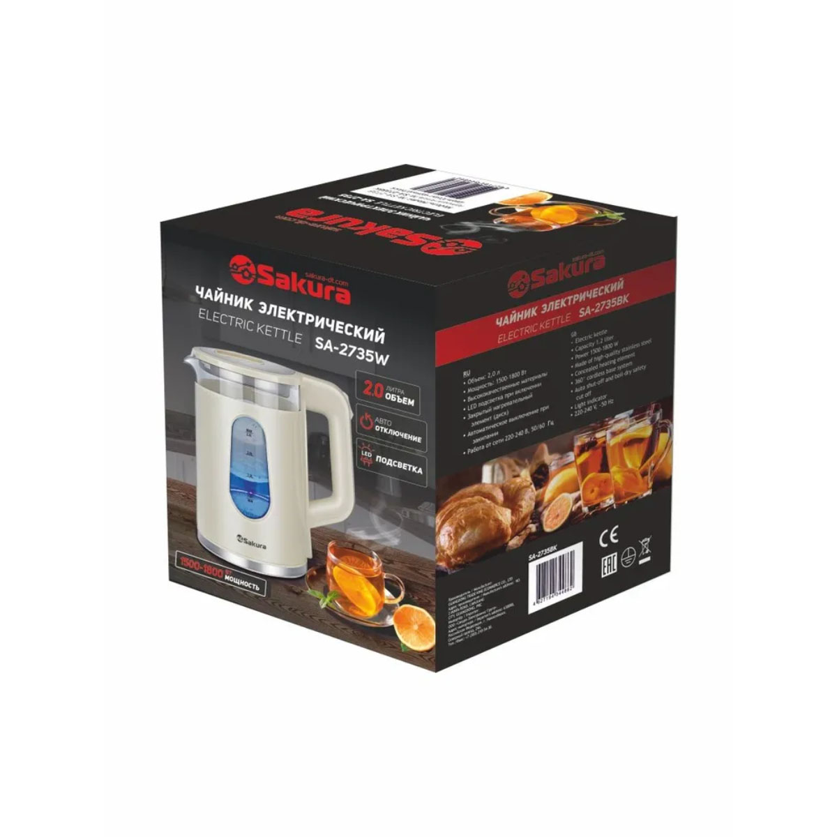 Эл.чайник SA-2735W 2.3л стекл.точечн.подсв.