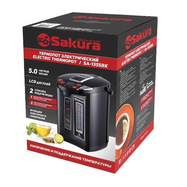 Термопот эл. SAKURA  SA-1355BK, 5л,подсветка,замок,5темп.,таймер