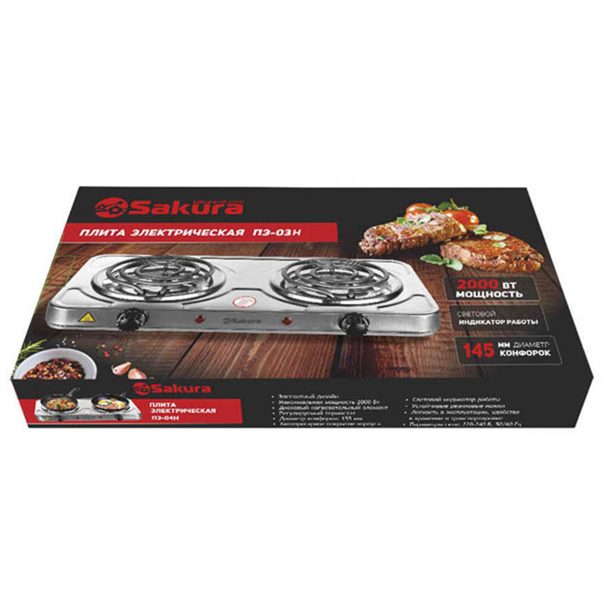 Эл.плита ПЭ-03Н 2000Вт 2конф/спир нерж.сталь