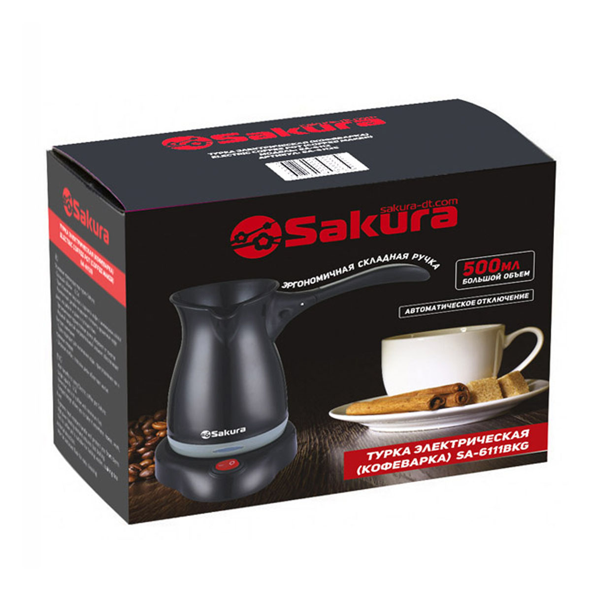 Турка эл. SAKURA SA-6111BKG, 0,5л, черный/серый