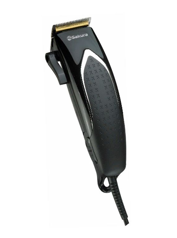 Машинка для стрижки эл. SAKURA SA-5110BK, от сети, 4 насадки, корпус нерж./пластик, черный
