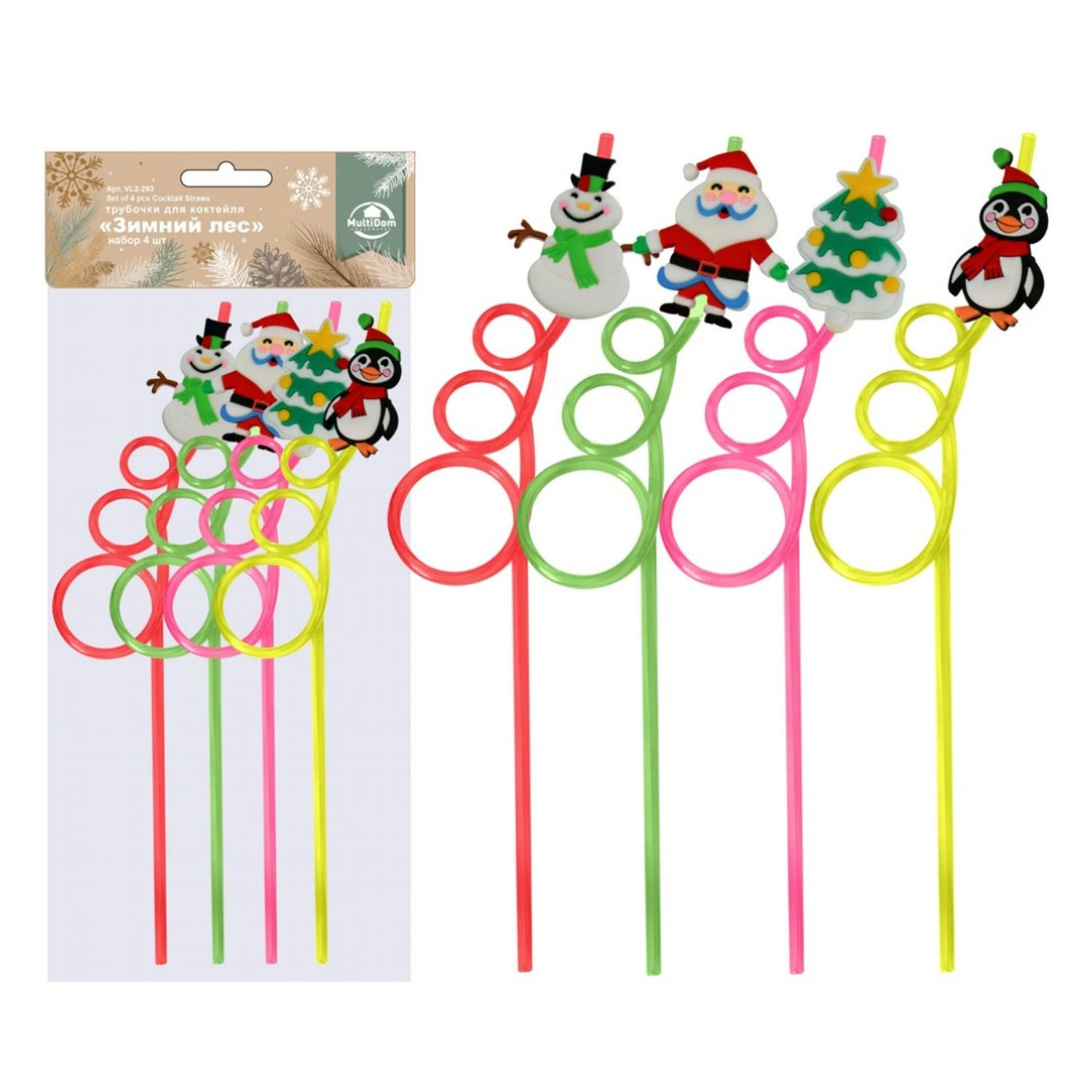 Наб.трубочек для коктейля 4шт Зимний лес VL2-293