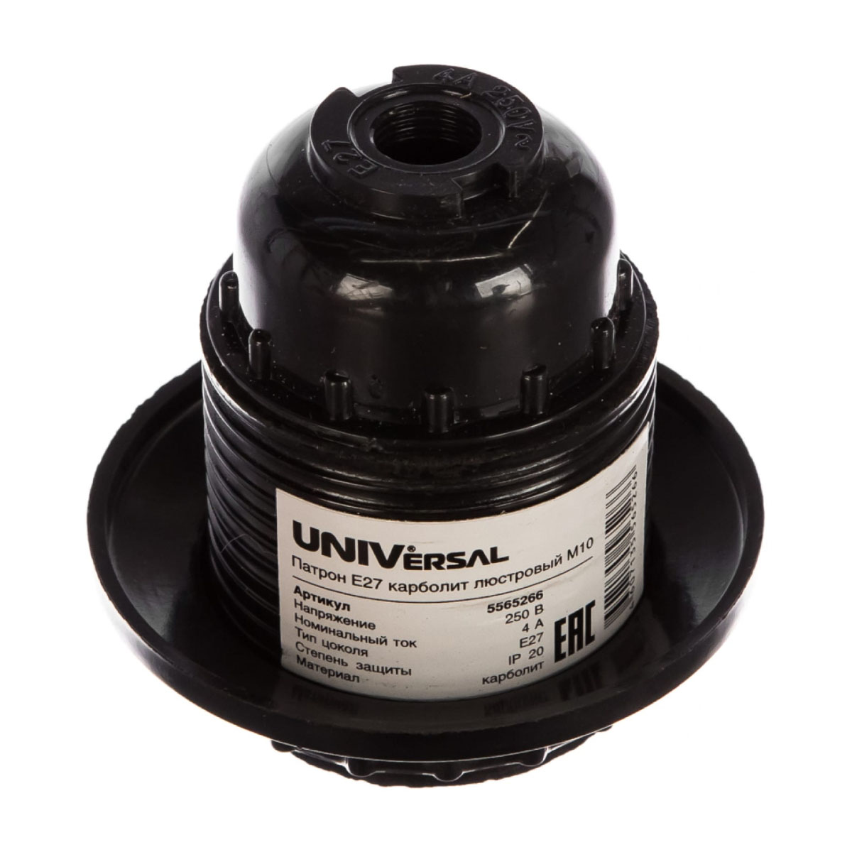 -Патрон люстровый 342510 Е27 карболитовый М10 4А 250В с этикеткой UNIVersal 5565266
