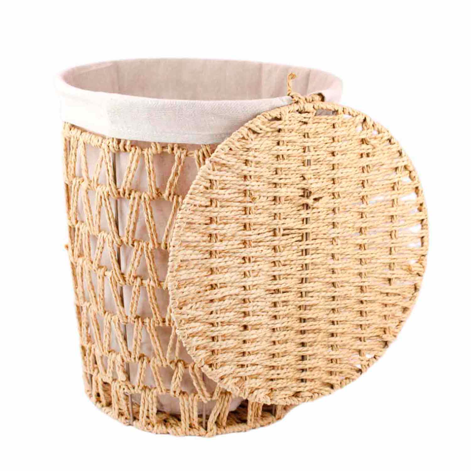 -Корзина д/белья круг беж.скрученный бум.жгут HTKR001 выс.47см D38см