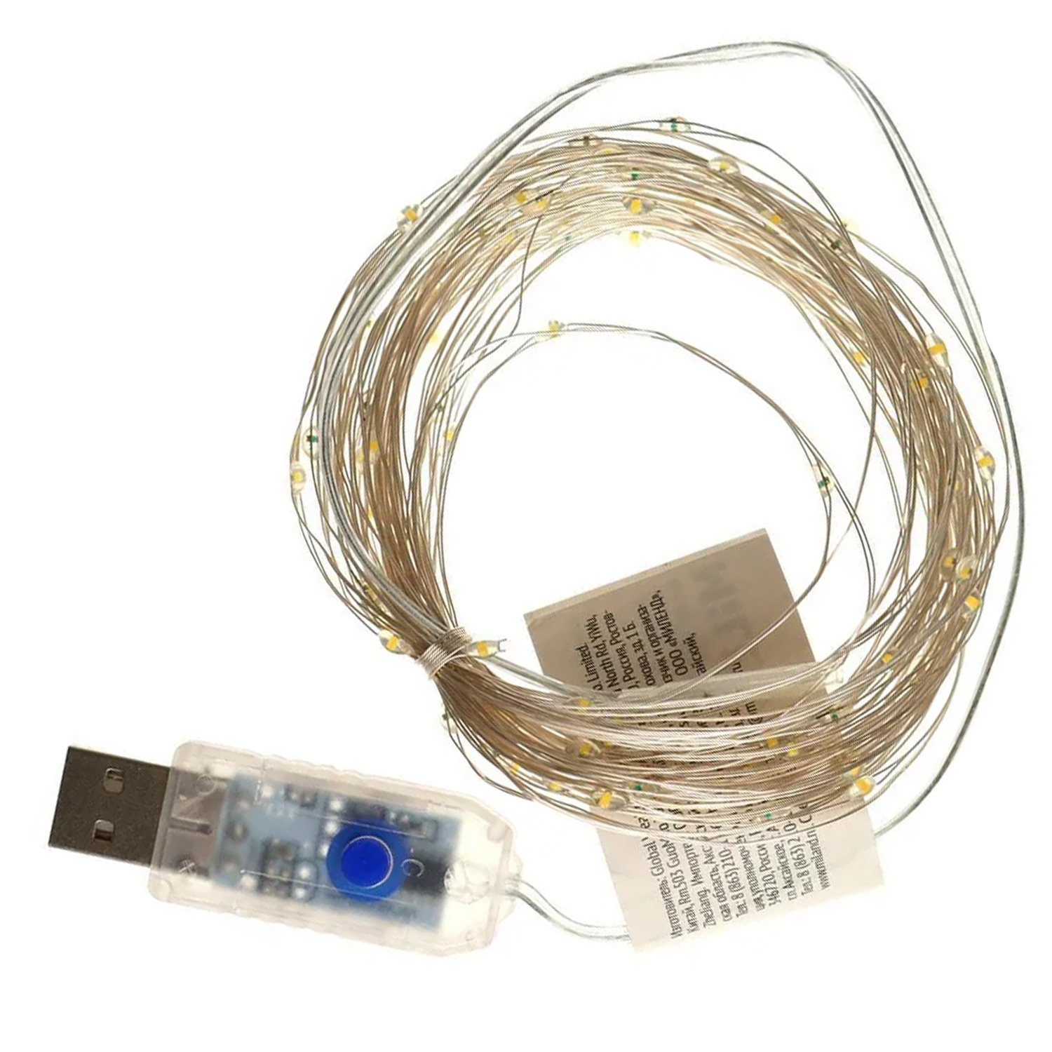 Гирлянда-проволока НУ-3016 10м 100 ламп, тёплый белый свет, USB 5V, с пультом управления