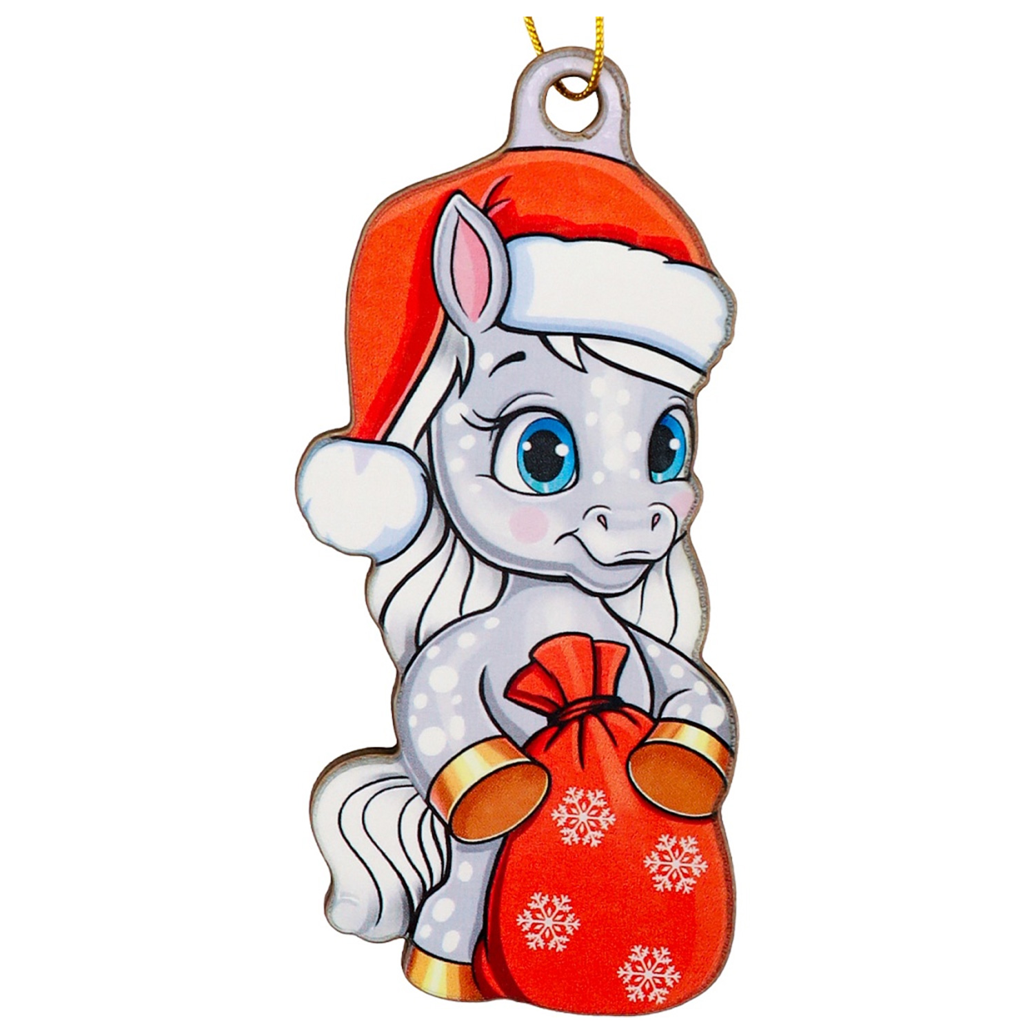 Подвеска елочная НУ-5838 Пони с мешочком подарков 9см дерево