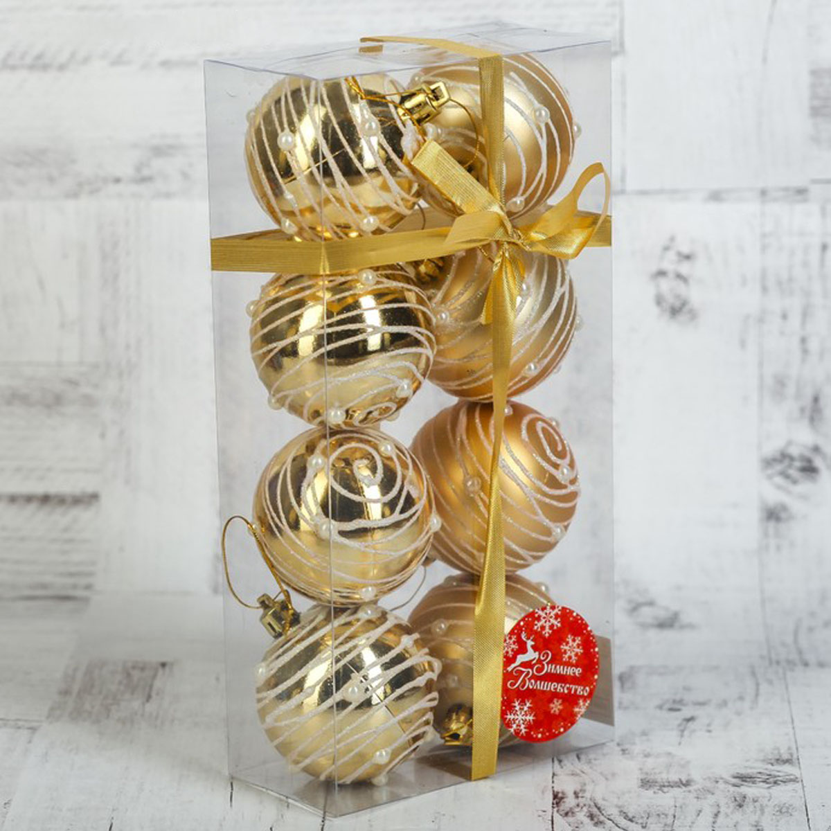 Новогоднее украшение  3249218, Наб.шаров Жемчужный орион 8шт d=6см, золото