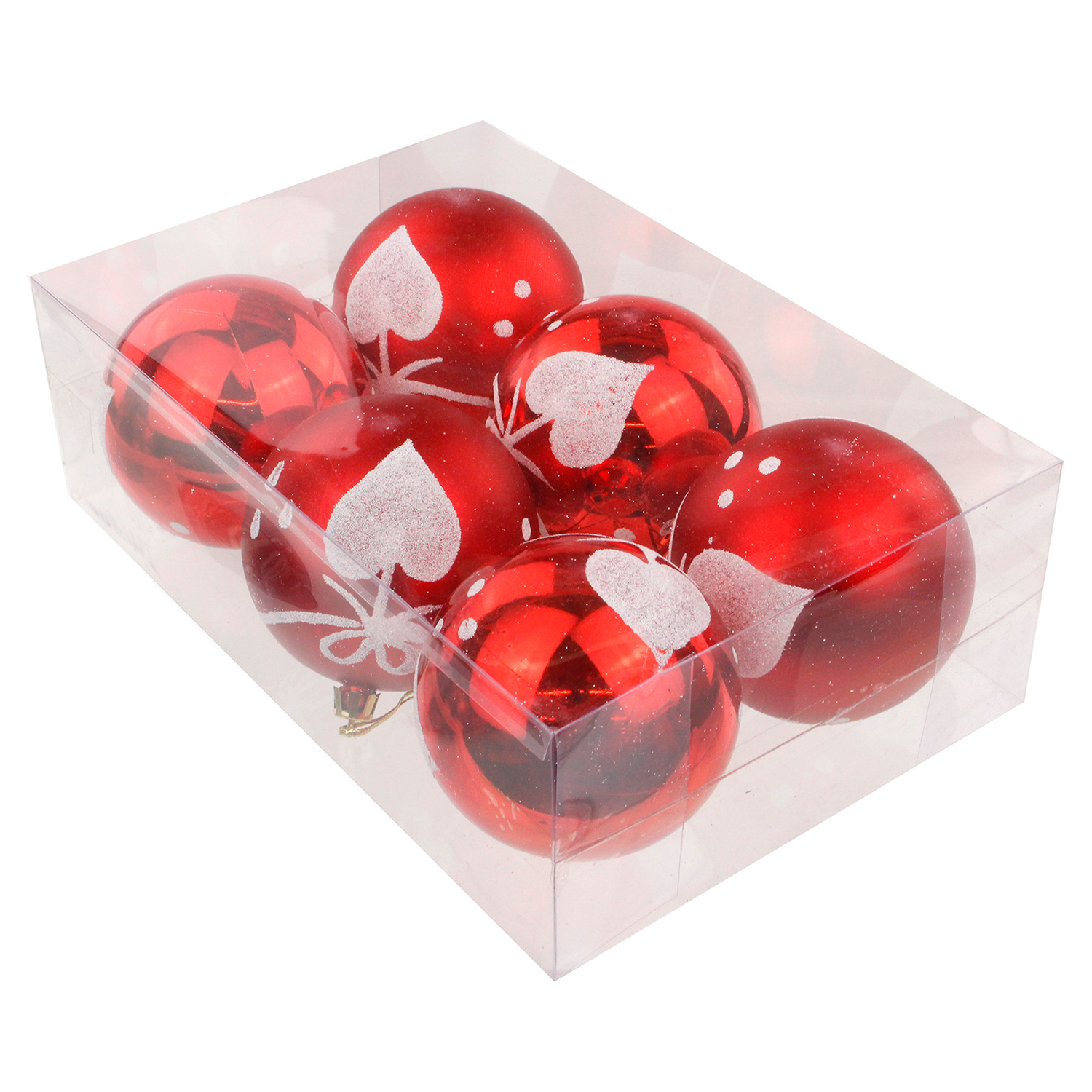 -Наб.елочных шаров "Сердце" 6шт,8см,пластик красный HTVZ012