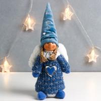 Кукла интерьерная 7567945 Ангелочек Марфуша в синем платье с сердечком, 33*12*9см