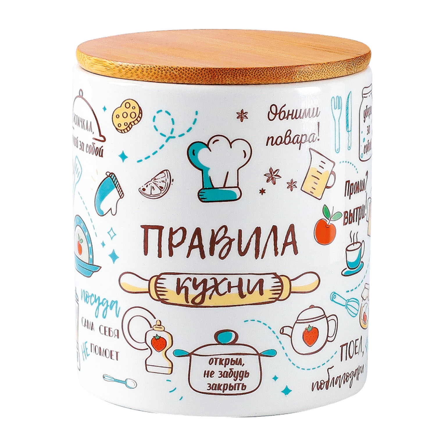 Банка ZFA982-11 Правила кухни керам. круг. 650мл бамб/кр. ТМ Appetite