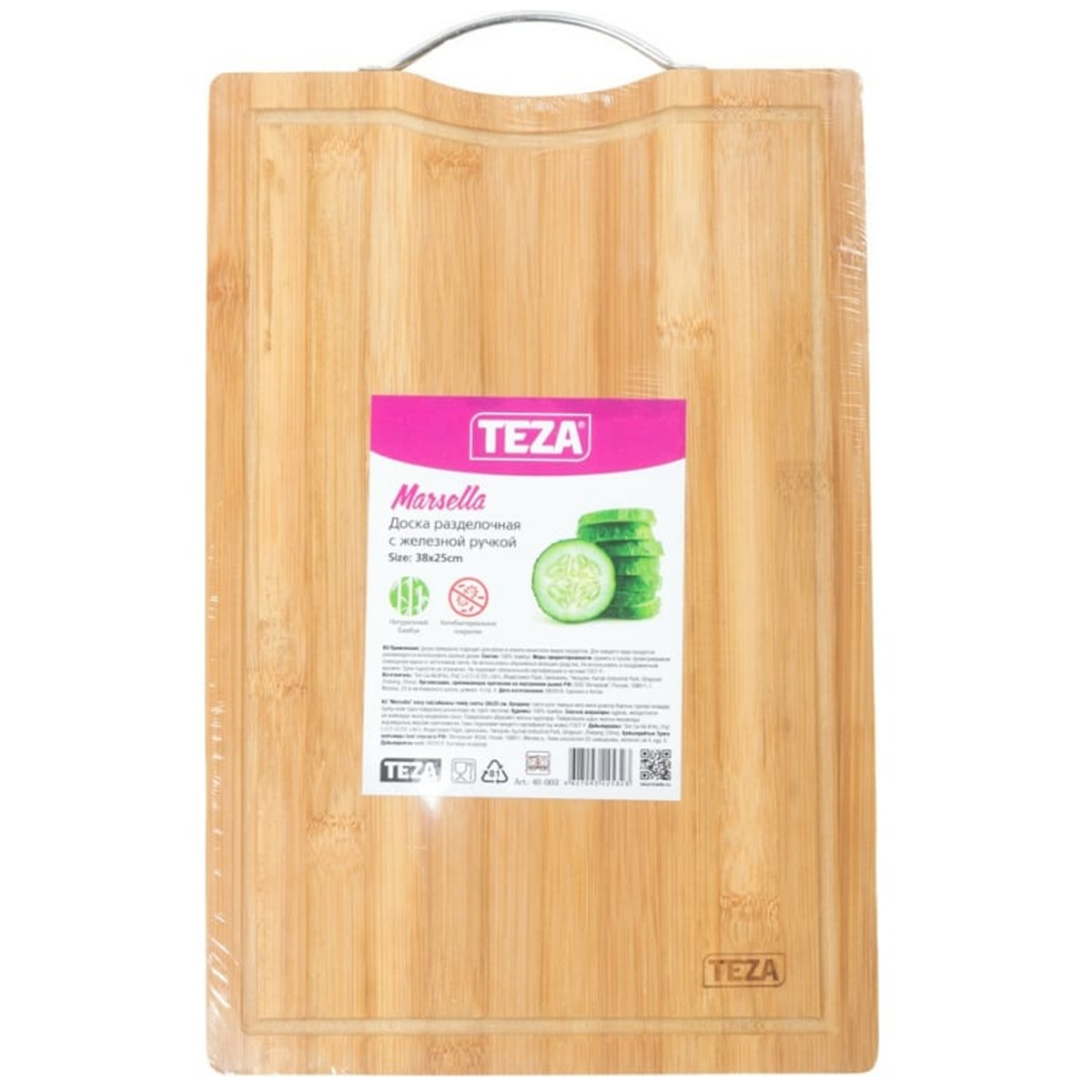 -Доска разд Marsella 38*25*1,5см с железной ручкой бамбук 40-003