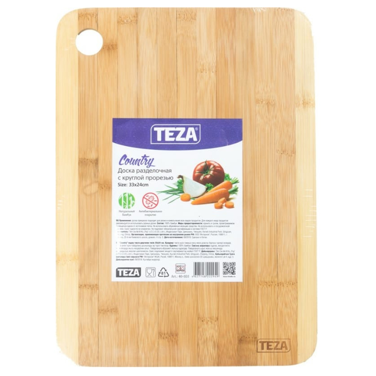 -Доска разд Country 33*24*1см с круглой прорезью бамбук 40-031