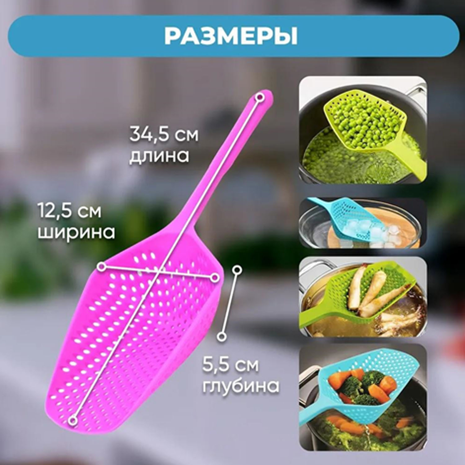 Лопатка (шумовка) пластик розовая