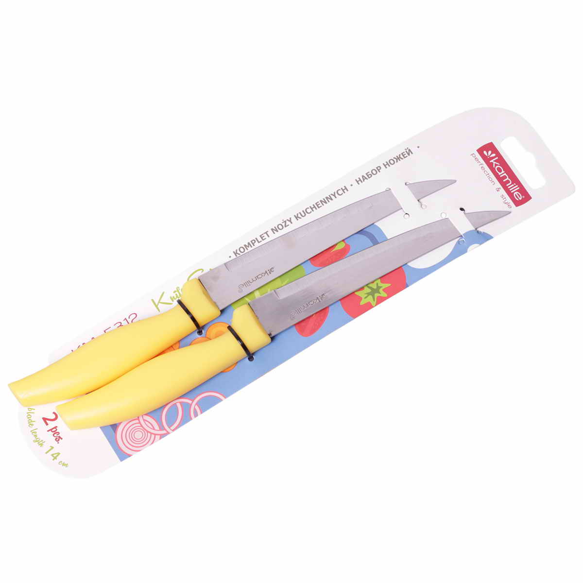 Набор ножей нерж. Kamille 5312, 2пр, с пласт ручками, лезвие 13,5см, рукоятка 11см, ассорт.