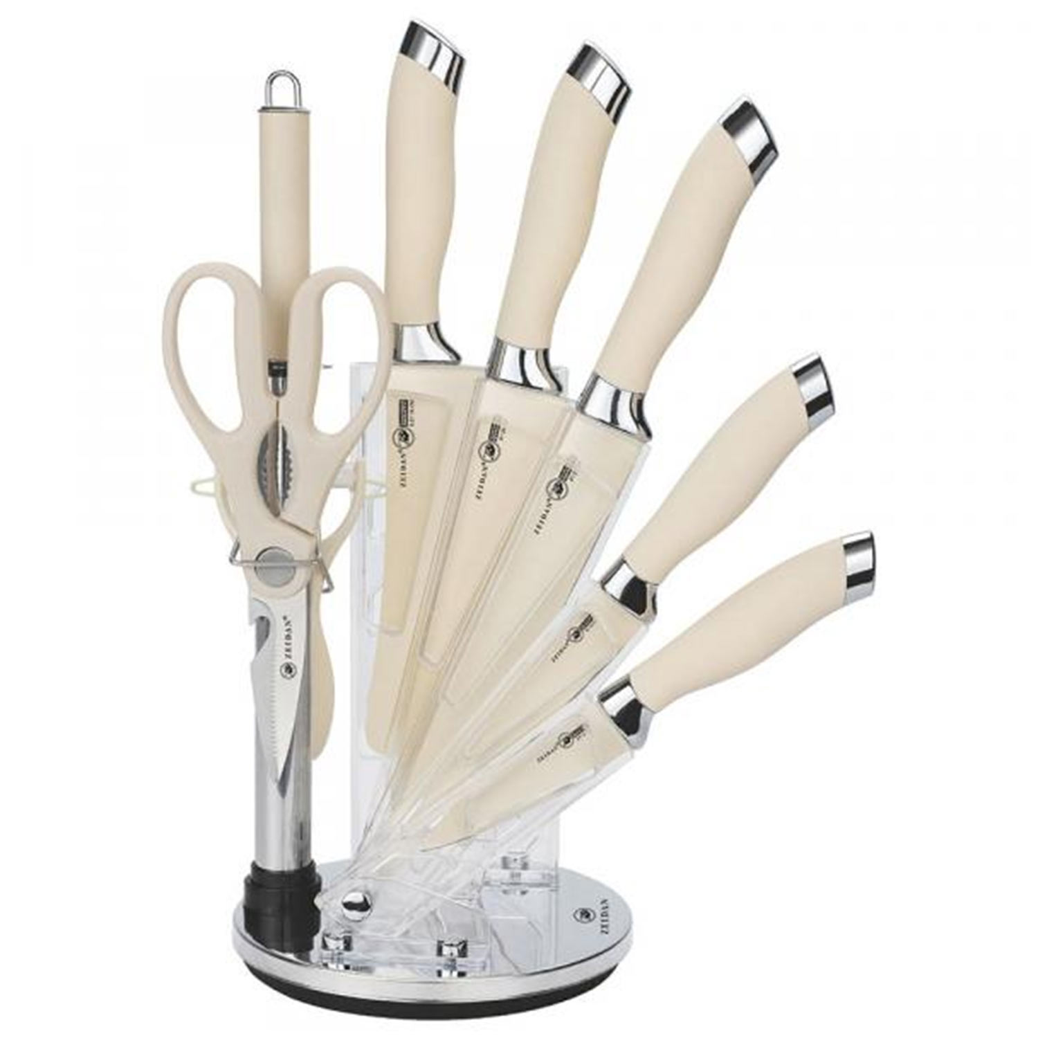 -Наб.ножей 9пр., Z-3128 нерж, на подст., прорезин.ручки