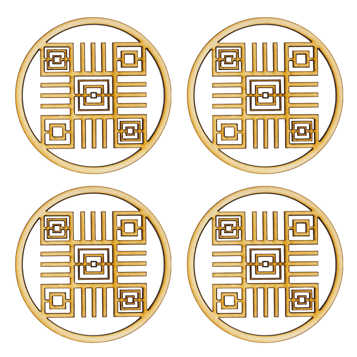 Набор из 4-х подставок под кружку "Фигуры", дерево ф100*3