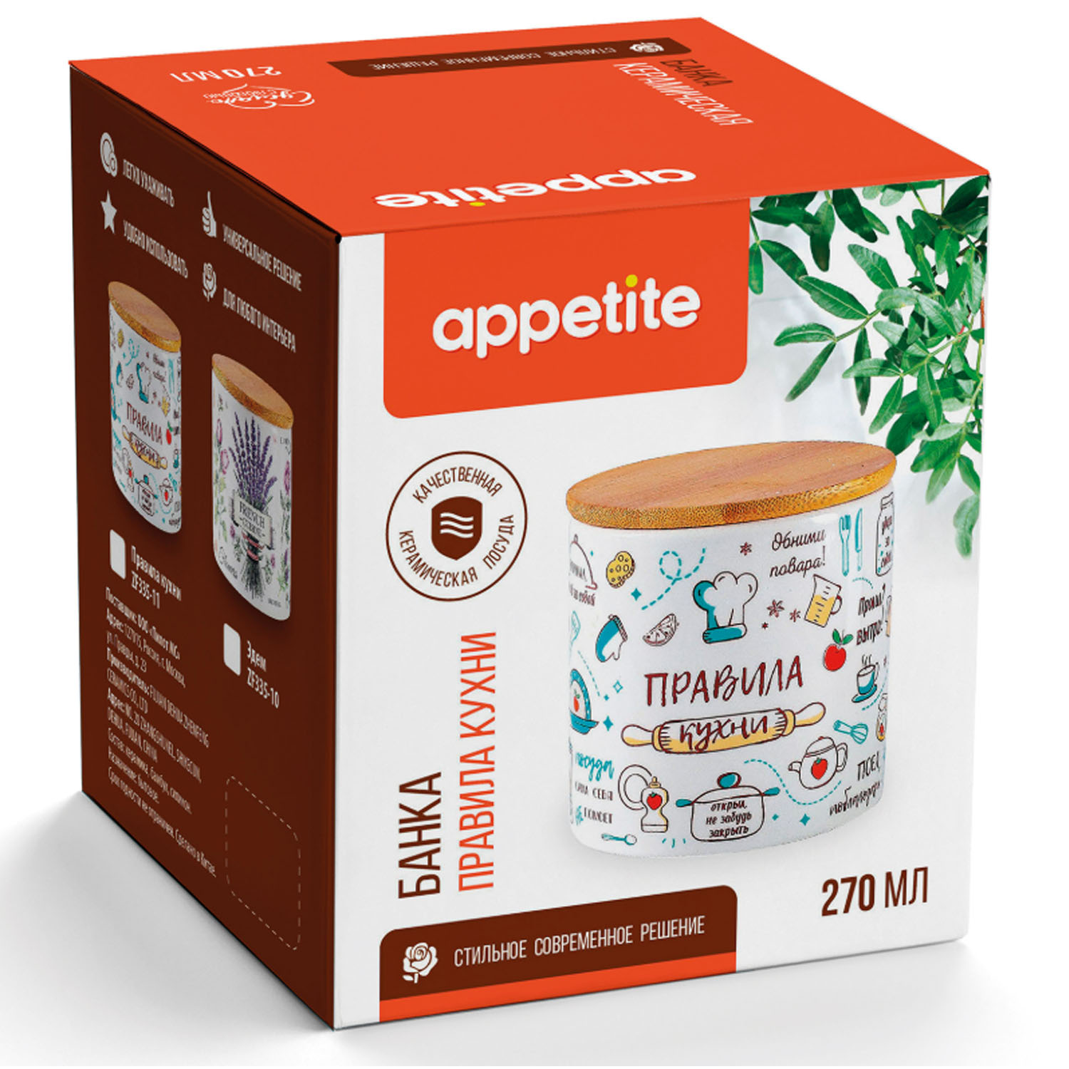 -Банка ZF335-11 Правила кухни керам. круг. 270мл бамб/кр. ТМ Appetite