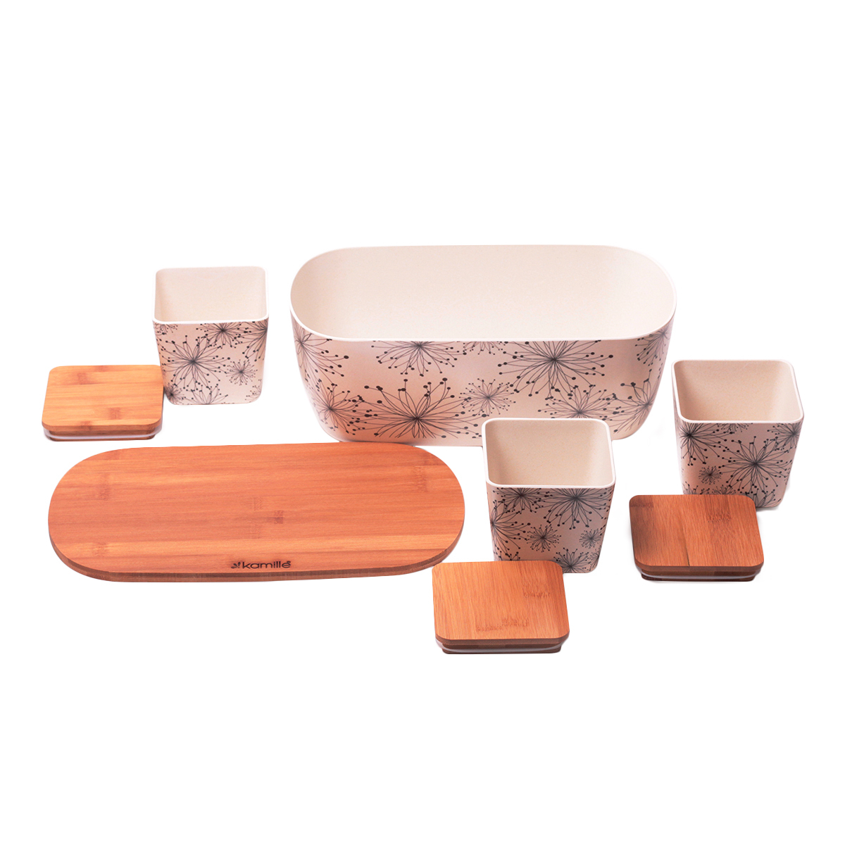 Посуду для приготовления пищи, столовую и барную посуду можно выгодно и удобно купить в Воронеже в магазинах «Всё для дома». Один из лучших представителей категории - Хлебница 1131 36*20,2*13,5см из бамб.волокна с крышкой + наб емк.-3шт(орнамент,цветы), отличающийся высоким качеством и доступной ценой. Ознакомиться с ассортиментом посуды можно на сайте интернет-магазина vdd36.ru