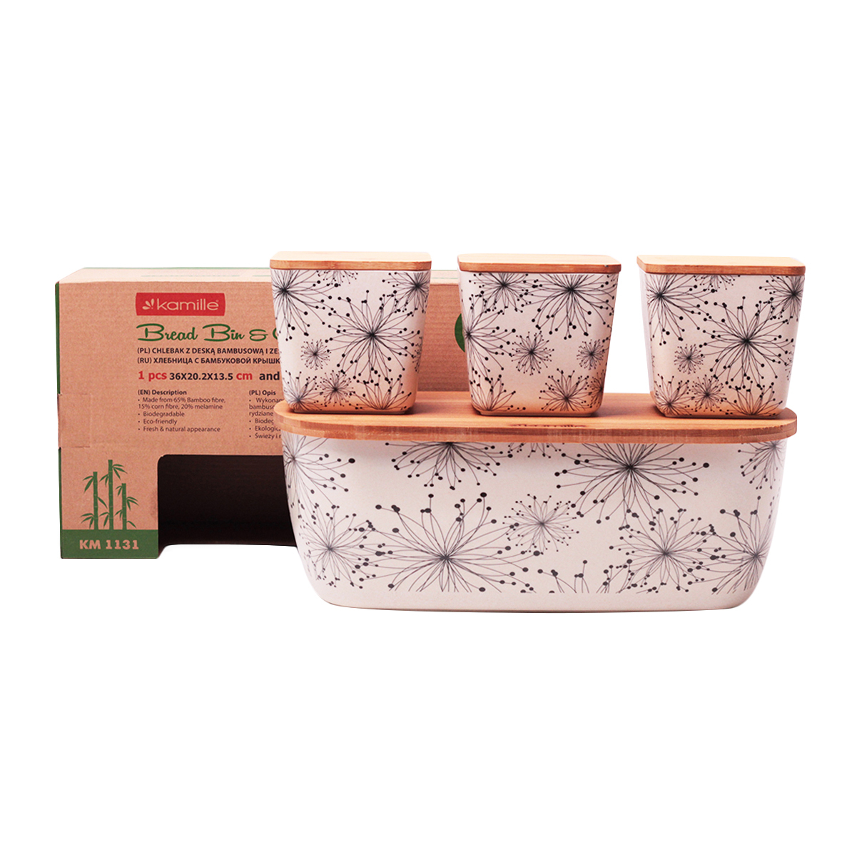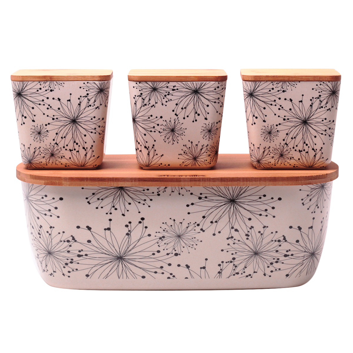 -Хлебница 1131 36*20,2*13,5см из бамб.волокна с крышкой + наб емк.-3шт(орнамент,цветы)