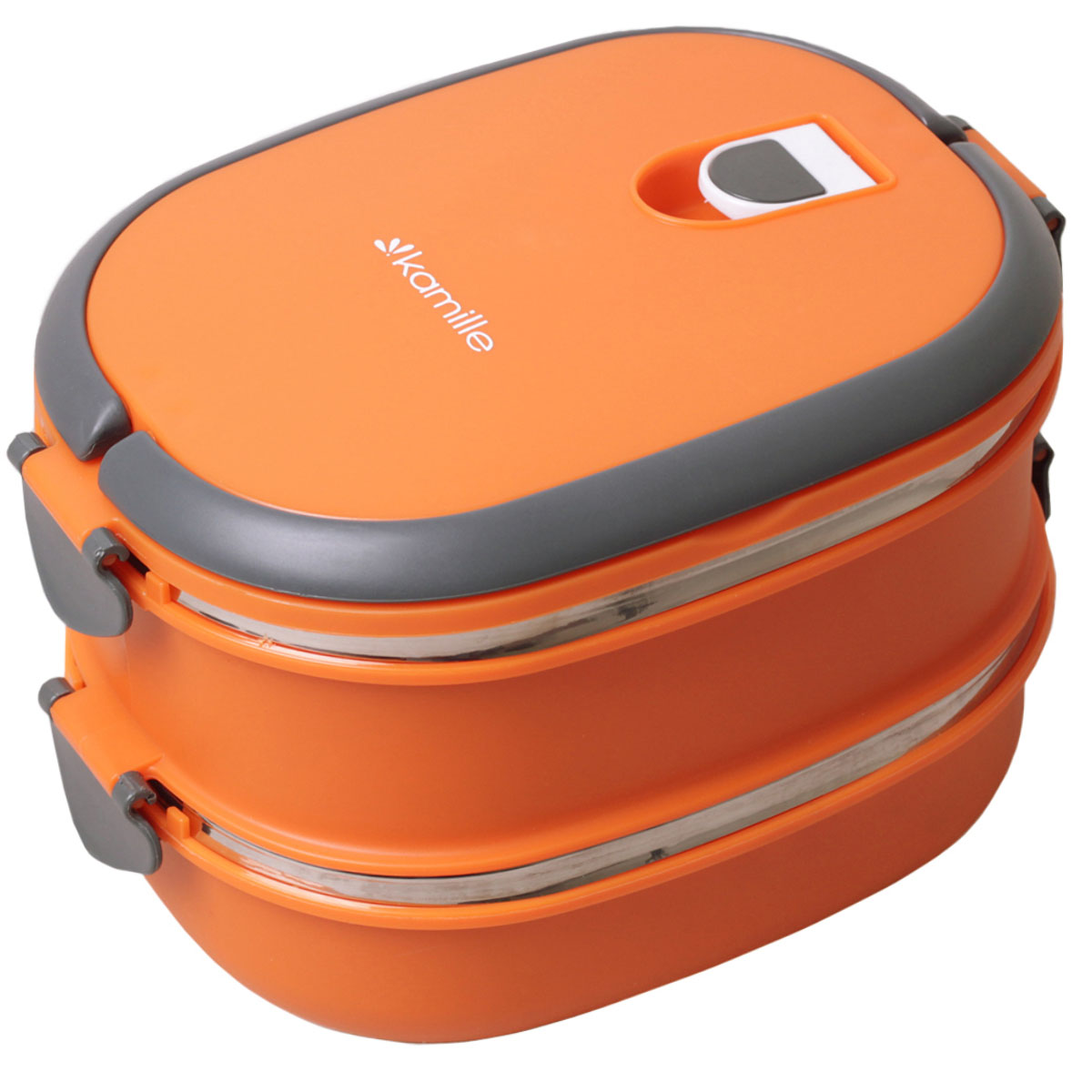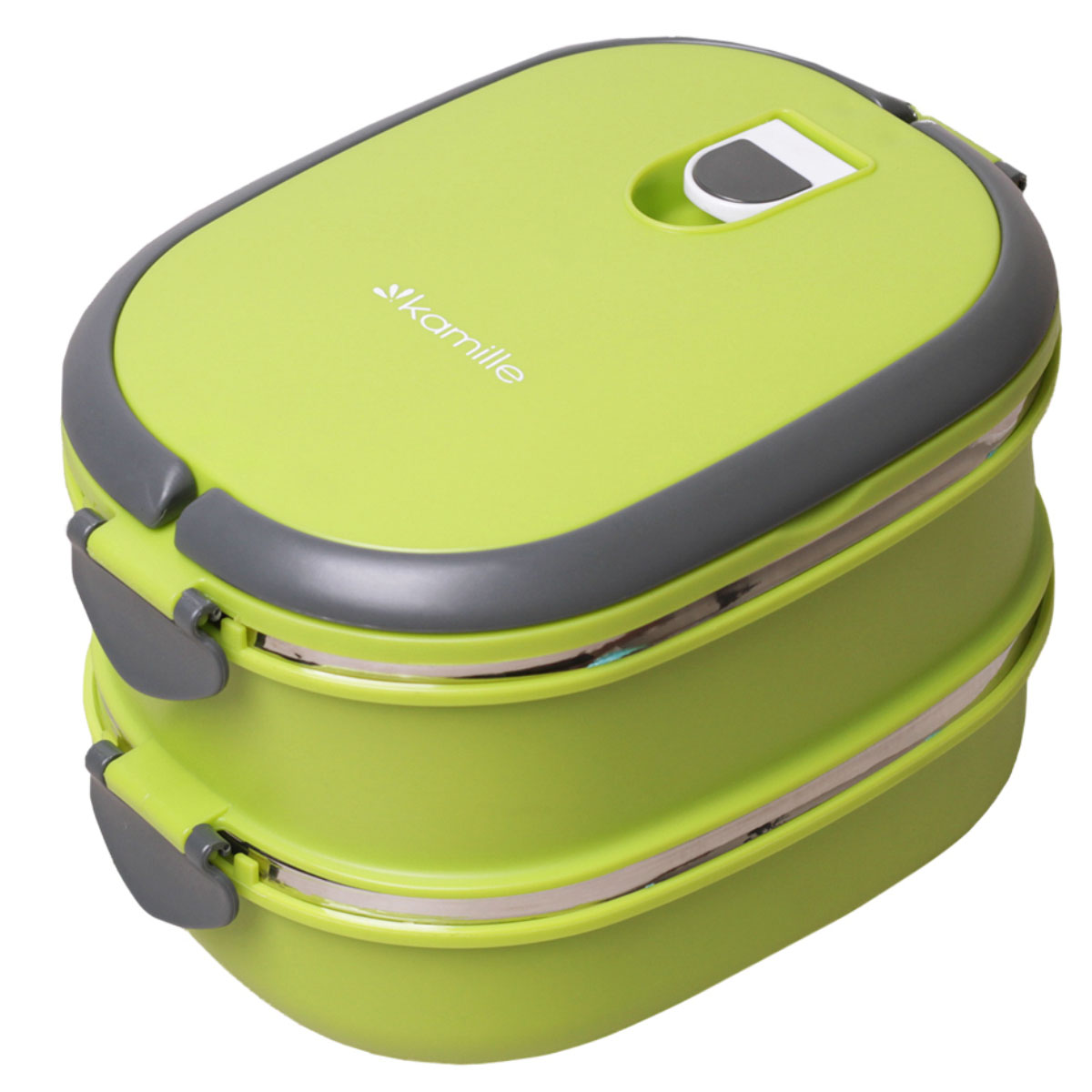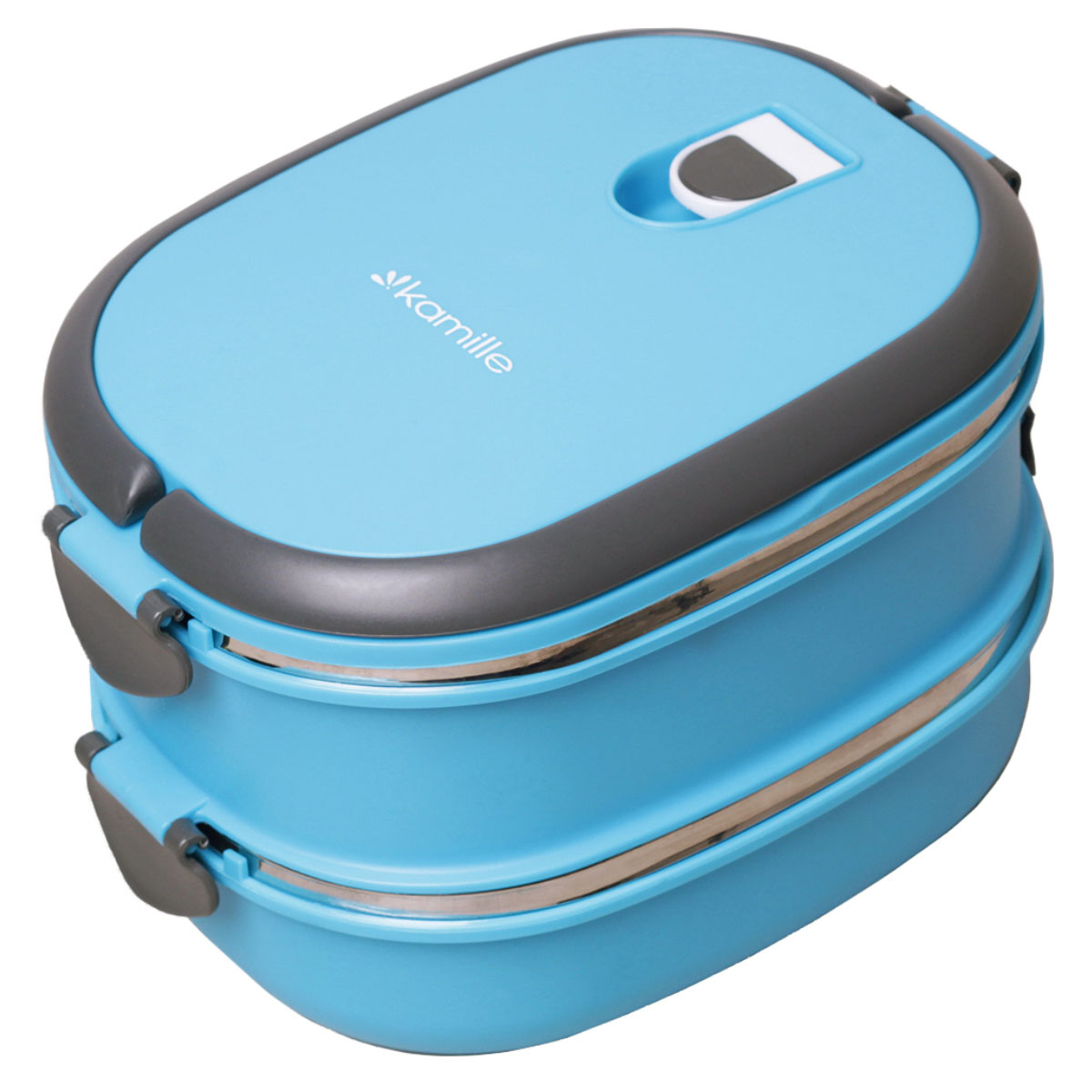 Ланч-бокс п/м Kamille 2109, двойной 1800мл. 20*14,5*13,5см пласт.корп/внутр.емк.нерж.сталь, голубой, салатовый, оранжевый