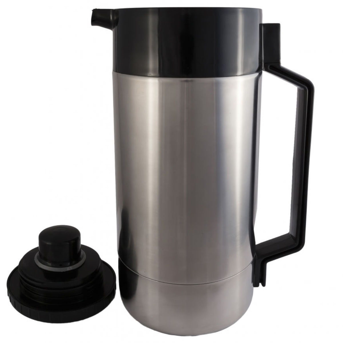 Узкое горло с носиком облегчает наливание без проливаний, а П-образная ручка из прочного полипропилена обеспечивает удобный и надёжный захват. Корпус изготовлен из высококачественной нержавеющей стали марки AISI 304, что гарантирует долговечность и устойчивость к коррозии.