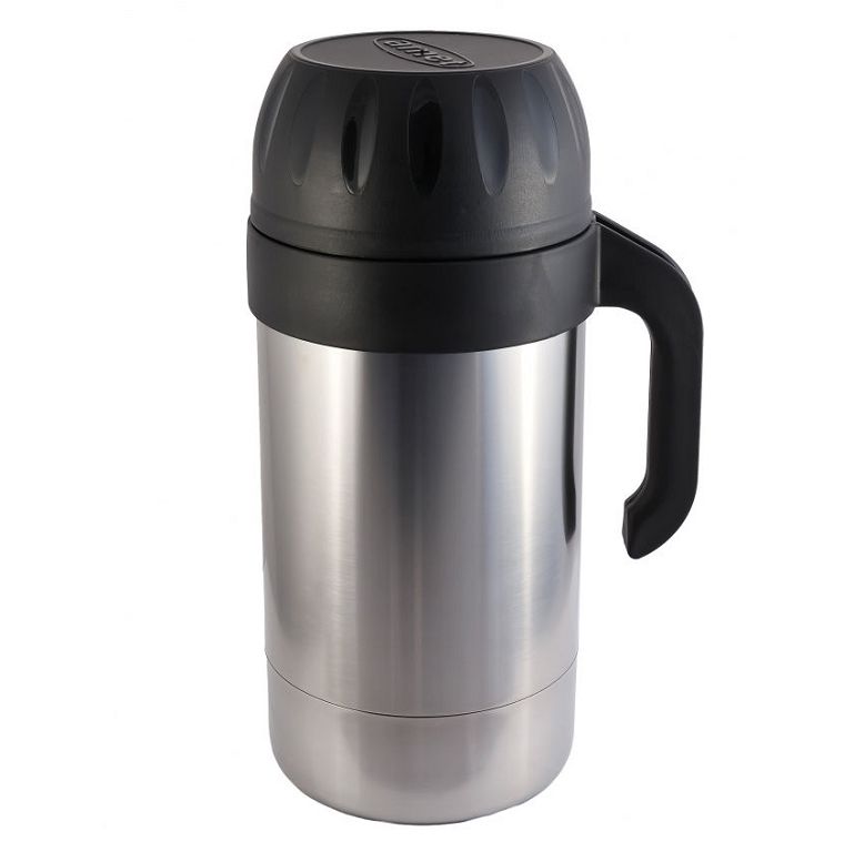 Корпус и колба выполнены из нержавеющей стали AISI 304, устойчивой к коррозии и безопасной для контакта с пищей. Термос сохраняет температуру напитков до 24 часов, благодаря продуманной конструкции и плотной крышке-чашке. Удобная Г-образная ручка из полипропилена облегчает транспортировку.