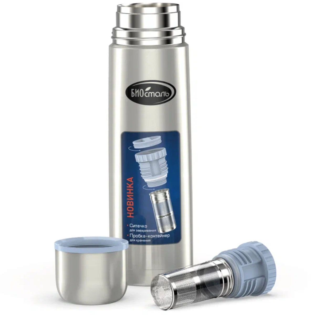 Термос нерж. BIOSTAL NB-1000Z, 1л, с узкой горловиной, пробка с ситечком из нерж.стали 12