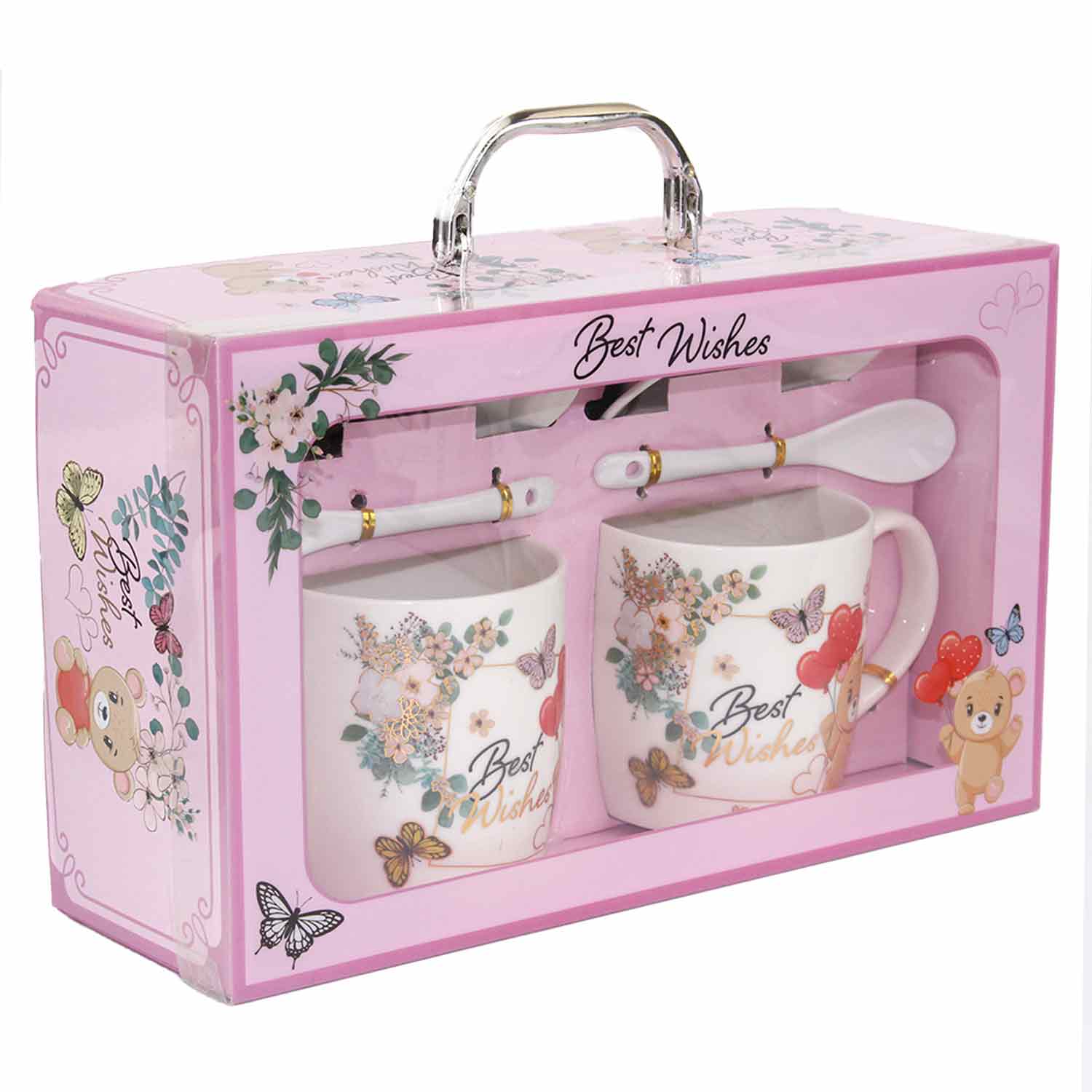 -Наб.кружек подар 2шт 300мл керамика HTHK-2258,с ложкой,крышкой