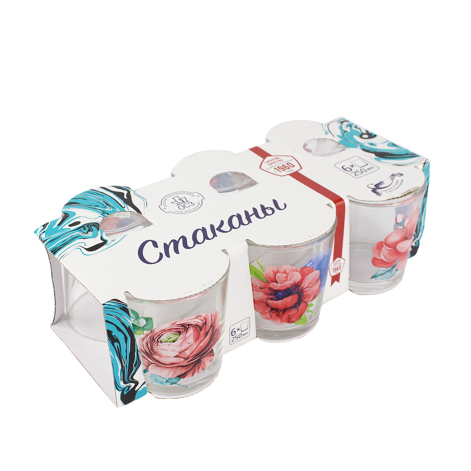 Наб.стаканов с1249 Анемоны 250мл 6шт  (1/6/180)