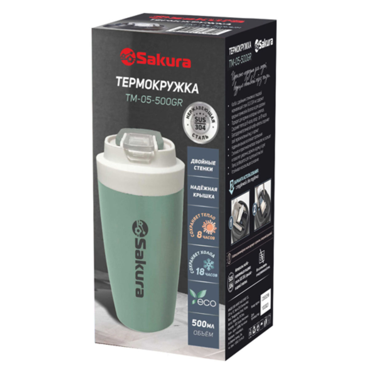 Термокружка 0,5л TM-05-500GR с трубочкой, шалфей