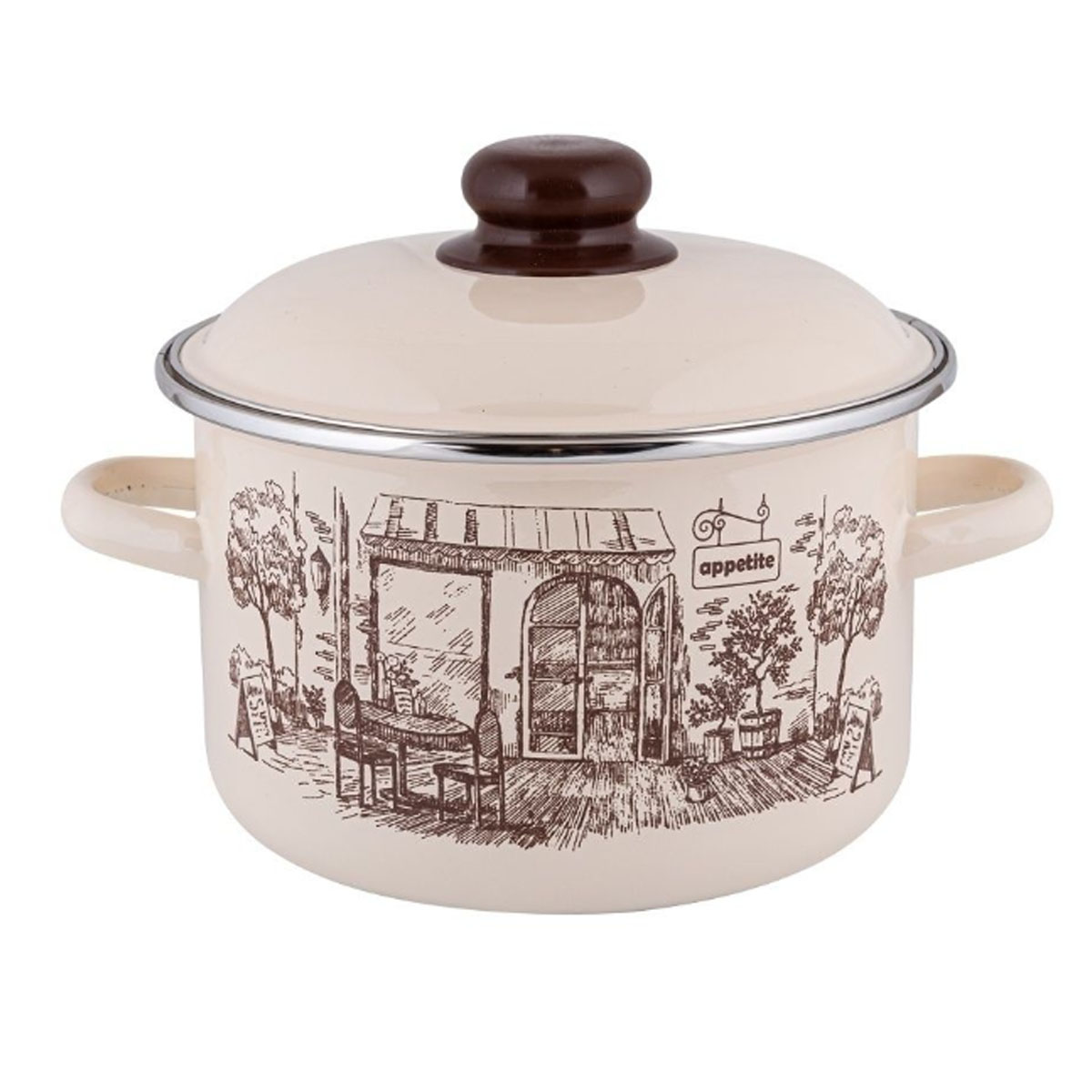 Кастрюля эмаль APPETITE "Cafe" 1RD161M, 2,0 л, с эмаль крышкой, с декором, цилиндрическая форма