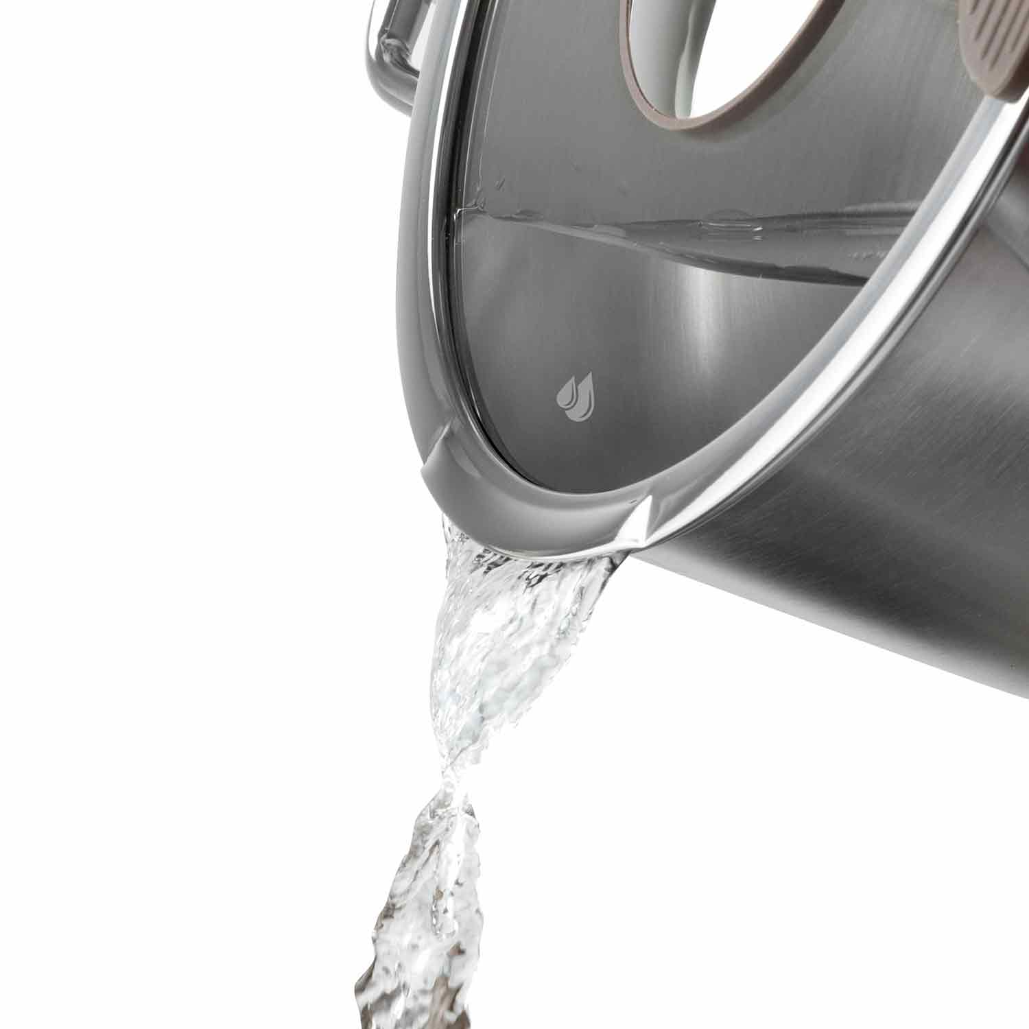 Особенность модели — плоская крышка с отверстиями для слива жидкости и пароотводом, благодаря чему кастрюля может заменить дуршлаг. Силиконовые накладки на крышке защищают пальцы при сливе горячей воды. Ручки из нержавеющей стали с точечной сваркой надежны и не нагреваются.