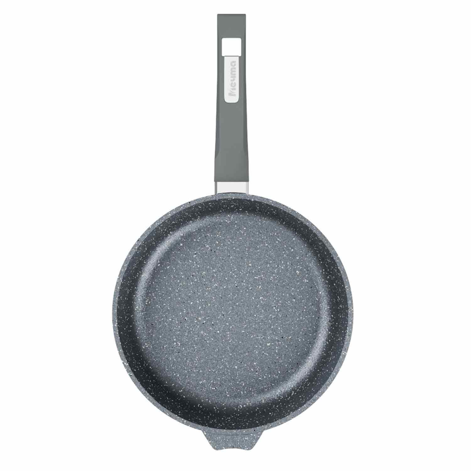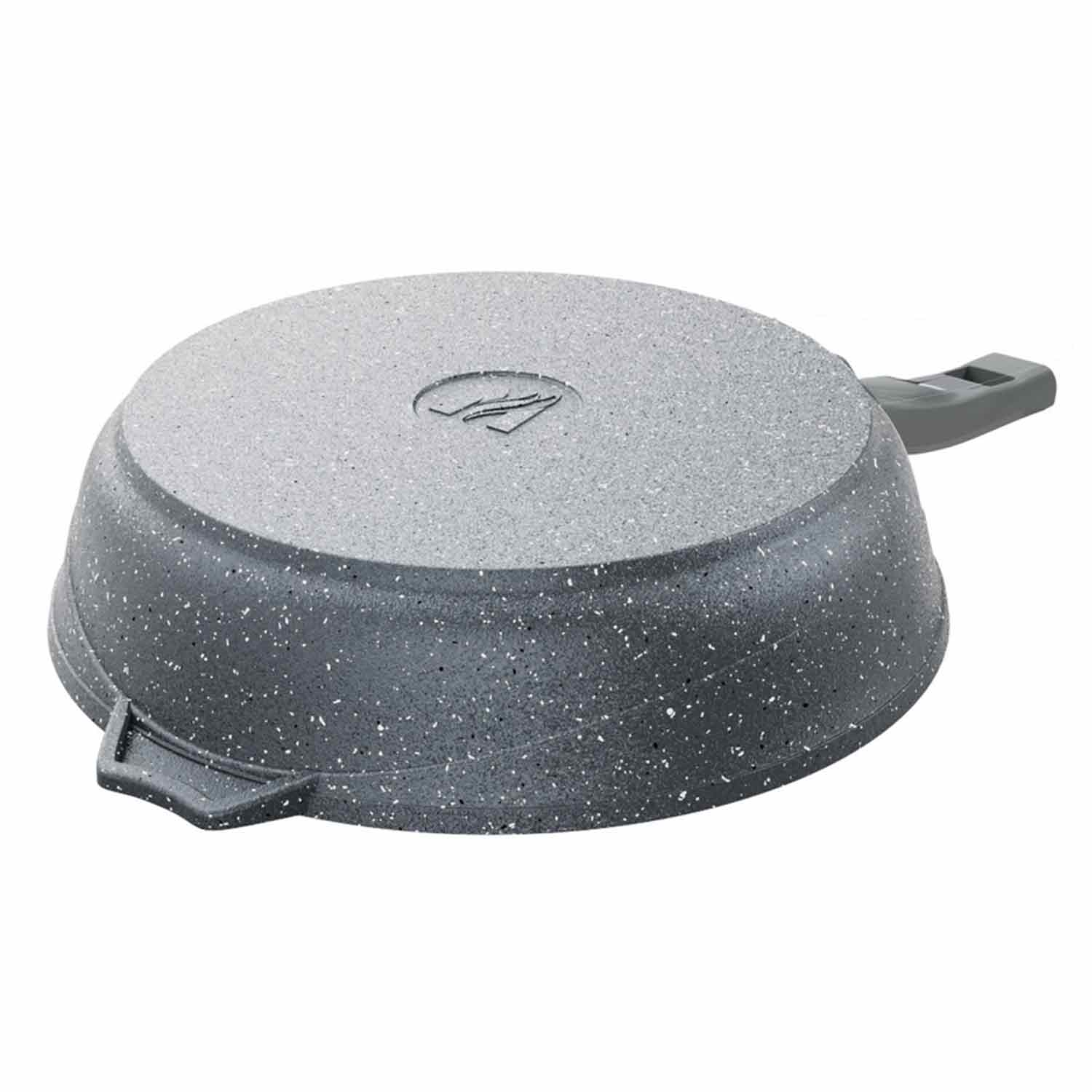 Серый корпус и фиксированная эргономичная ручка делают эту сковороду удобной и эстетичной. Подходит для использования на большинстве типов плит, включая газовые, электрические, стеклокерамические и галогеновые, а также для готовки в духовке.