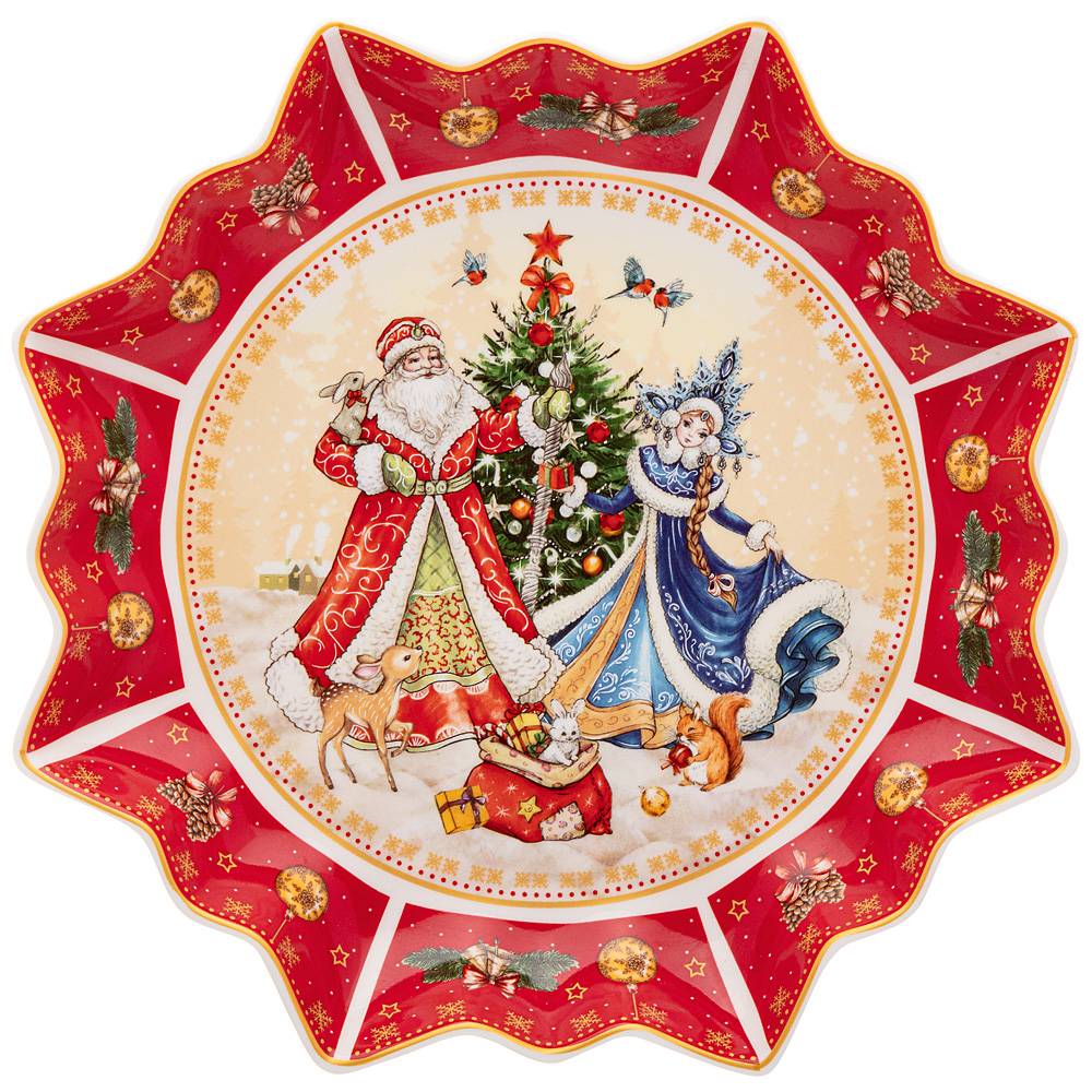 Блюдо 85-1738 Lefard Дед мороз и снегурочка 26см красное