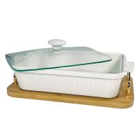 -Блюдо для запекания 142-157 36см прямоуг.с крышкой на подставке в под.уп.Фарфор