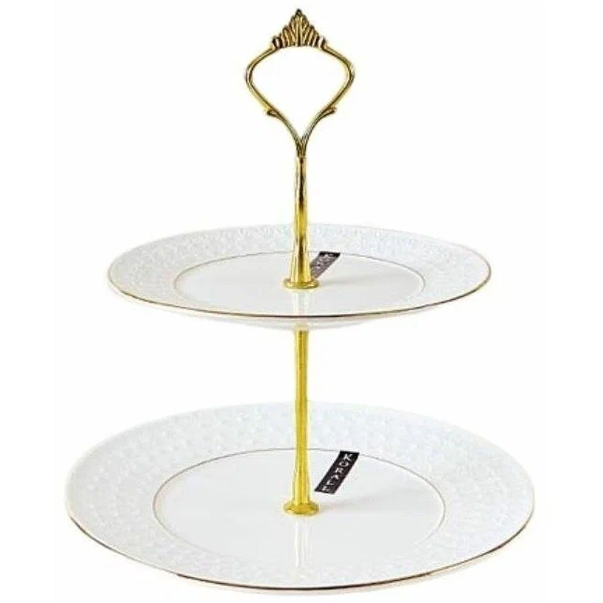 Ваза для фруктов фарфор Коралл "Снежная королева" CMB0134-A, 2 яруса, диаметр 165*210 мм, круглая, золотая кайма, белый