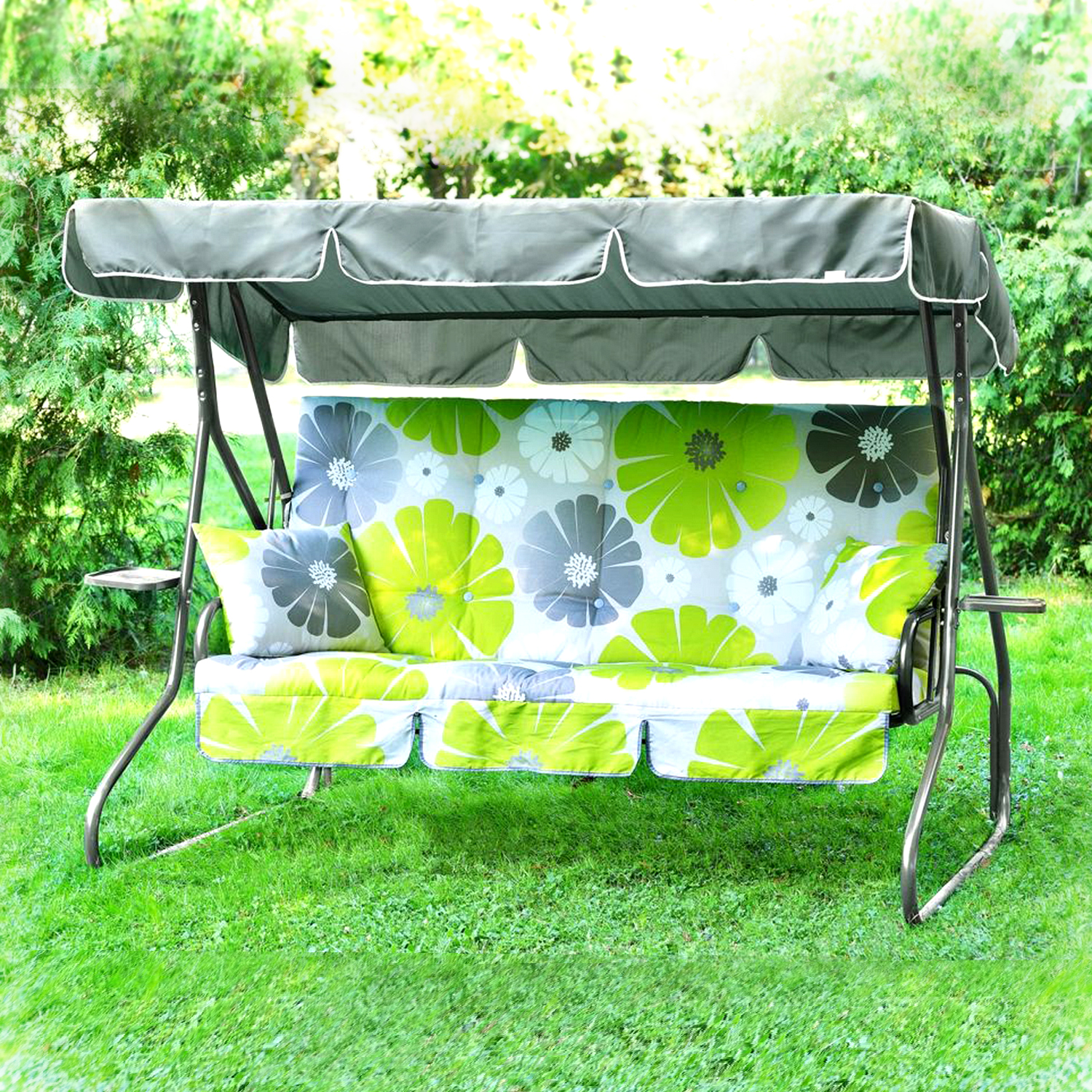 Качели садовые OLSA "Люкс-3" С907, 3-х местные, 2140х1543х1600мм, допустимая нагрузка 280кг, труба 32мм, регулировка спинки