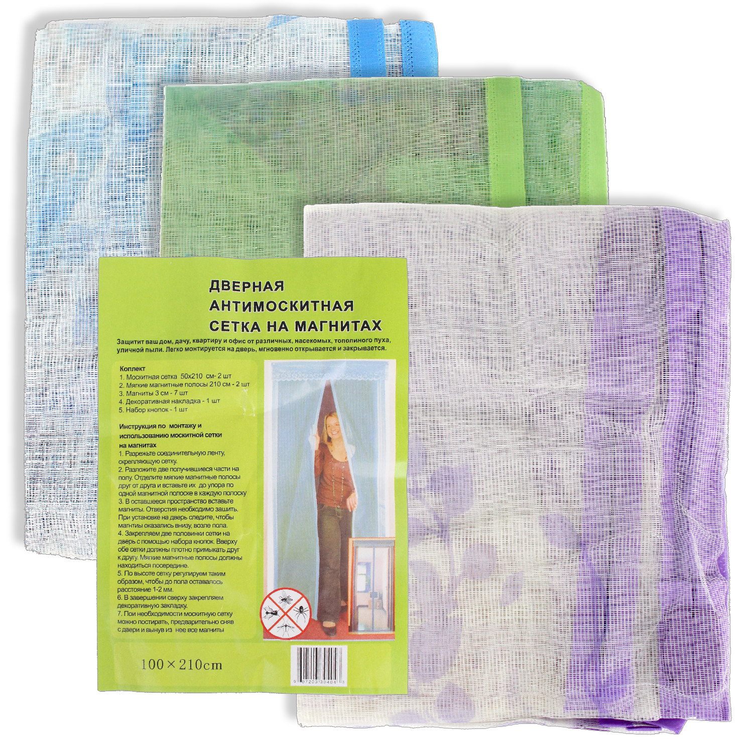 -Сетка москитная дверная КТ005 на магнитах 100*210см с рисунком микс