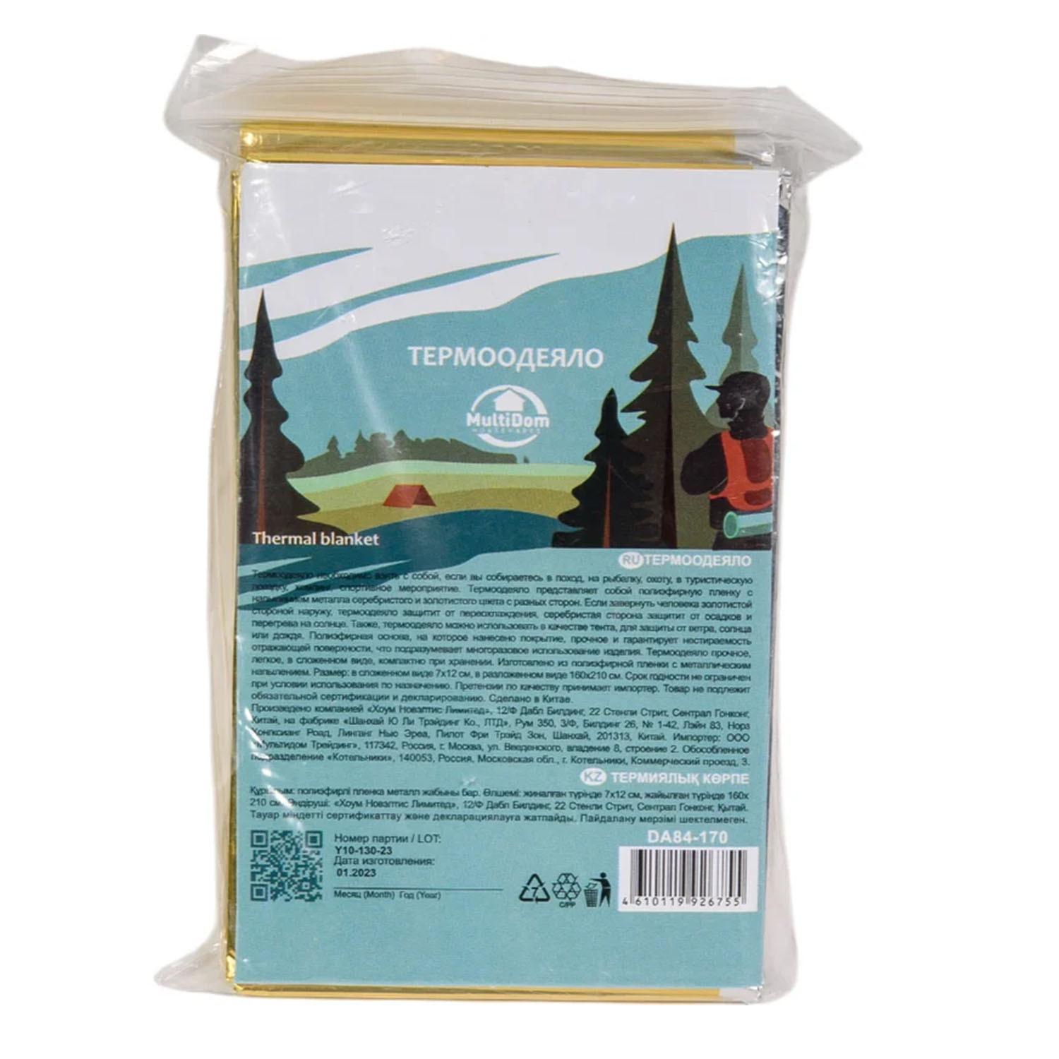 Термоодеяло DA84-170 160х210см, золото+серебро и еще большой ассортимент других товаров для туризма и отдыха на природе, товаров для дачи можно купить по выгодным ценам в онлайн-магазине vdd36.ru с возможностью бесплатного самовывоза в любом розничном магазине сети «Всё для дома».