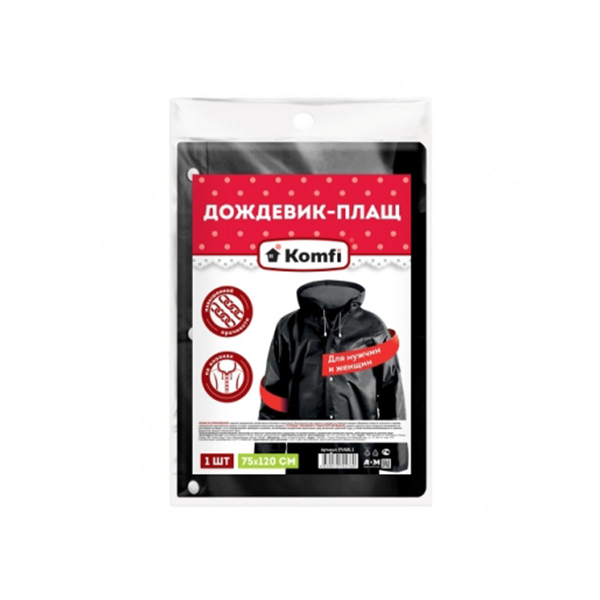 Дождевик EVA EVABL1, с капюшоном (на кнопках), черный